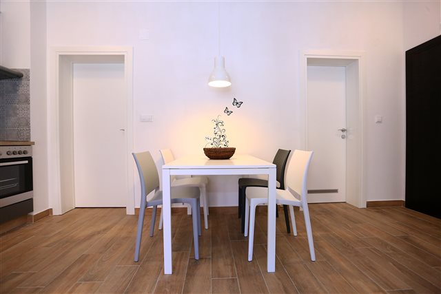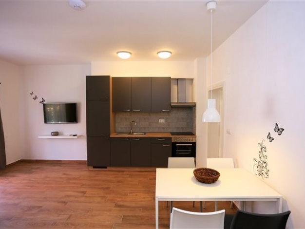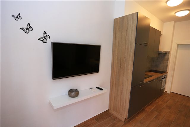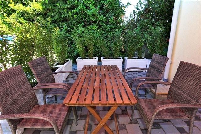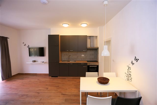 Komplet eingerichtetes Apartment mit Blick auf den Hof. Befindet sich nahe dem Kieselstrand Luke. Das Apartment verfügt über ein Schlafzimmer, ein Bad und zwei Zusatzbetten im Wohnzimmer.