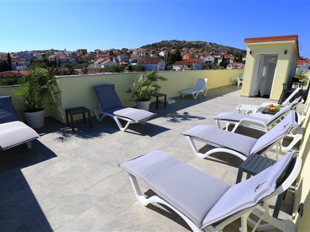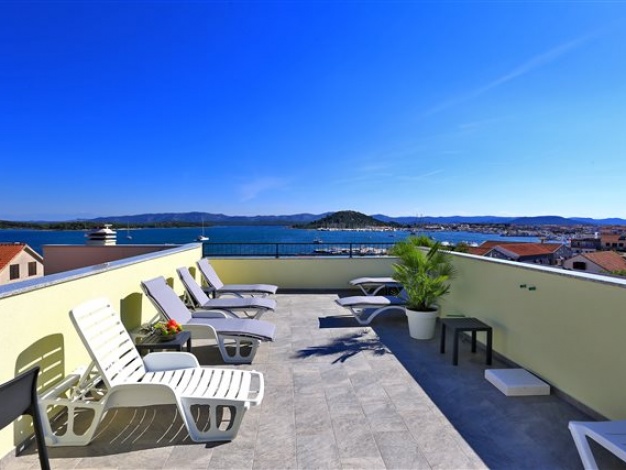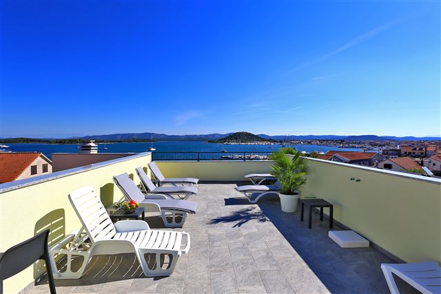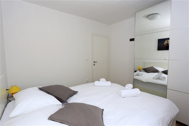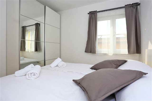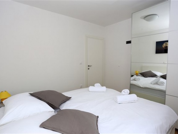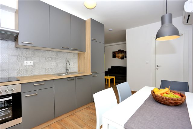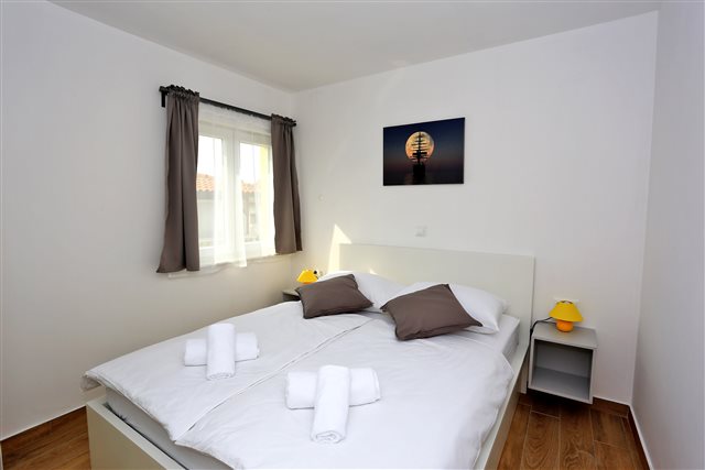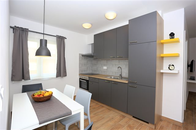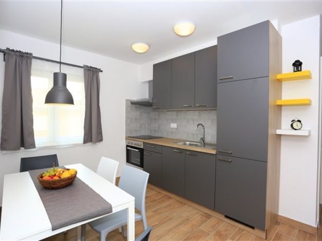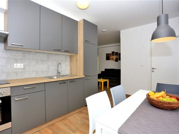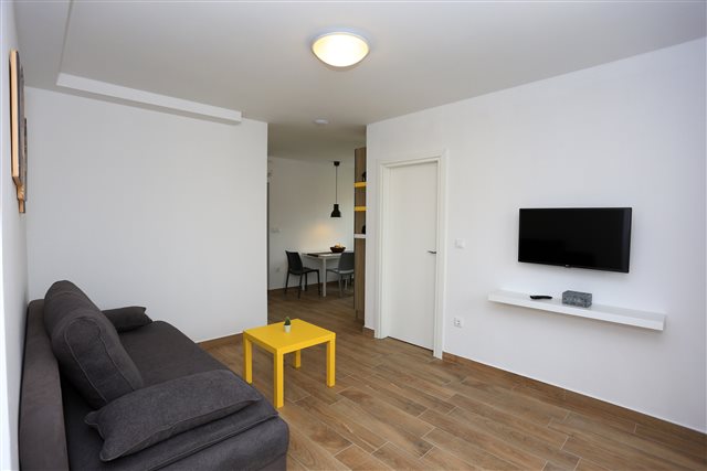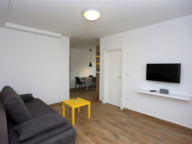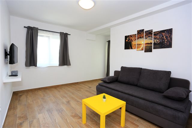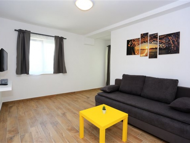 Komplet eingerichtetes Apartment mit Blick auf das Meer. Befindet sich nahe dem Kieselstrand Luke. Das Apartment verfügt über ein Schlafzimmer, ein Bad und zwei Zusatzbetten im Wohnzimmer.